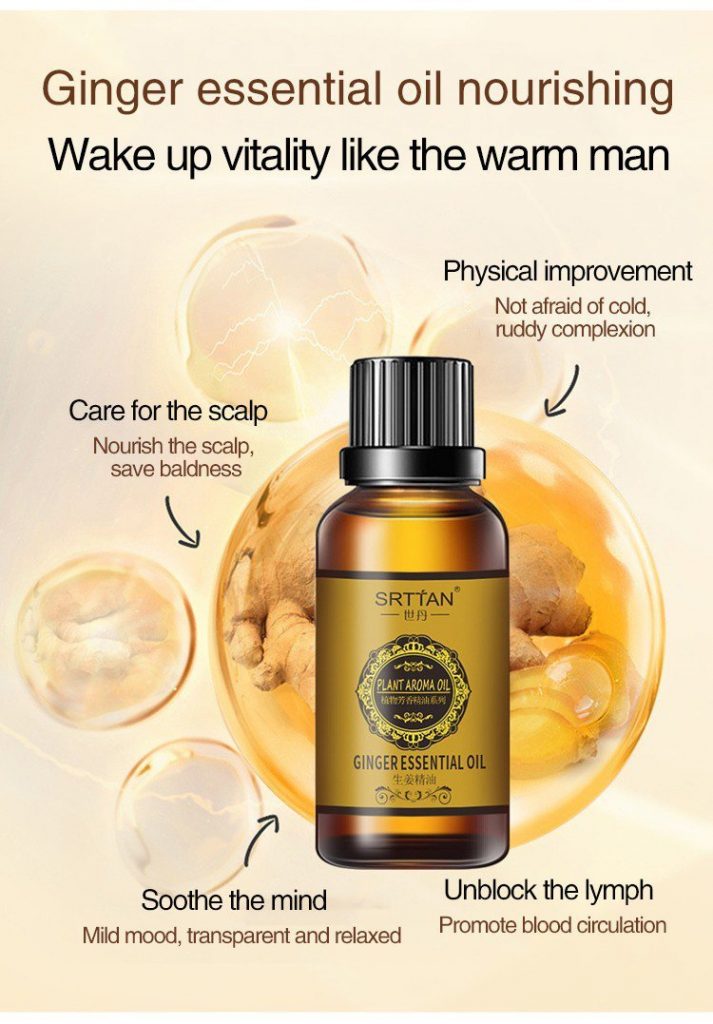 2. Soin des cheveux Ajoutez 1 goutte d’huile de gingembre au shampooing, massez doucement le cuir chevelu, renforcez les cheveux, hydratez et réparez !