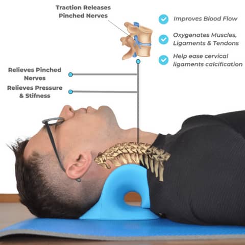 Then, the three-way system of cercavical tractionallows compressed discs to open and relax.